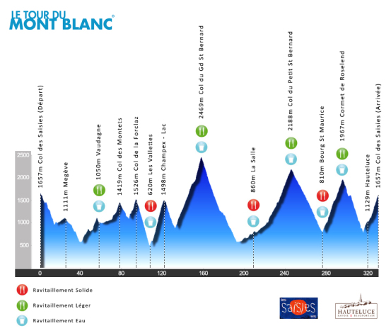 Now in its 7th year, the Tour du Mont Blanc is renowned as Europe's hardest 1-day bike event and is cited by the organisers as being the same as riding the Marmotte twice (eek!). It takes in legendary Alpine passes (5 hors category climbs in succession) as part of its 330km loop through 3 countries, returning back into France for a mountain top finish at Col des Saises.